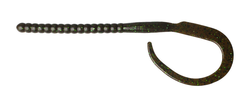 11" FLOATING WORM. GREAT FOR OFFSHORE ROADBEDS, HUMPS, ETC., FISHED ON A 1/2 OR 5/8 OZ FOOTBALL OR WOBBLE HEAD.